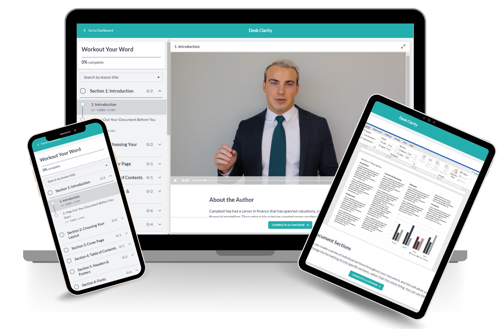 Our value is in what we left out of our courses. There are thousands of things you can learn, but only a select few that will really benefit you in the business world. We have narrowed this down to include only what you need to learn for the business world, and included nothing more. Free courses can often be unstructured and either go too deep into one niche topic, or otherwise be too general and basic. We build up from simple cases to advanced uses to give you a complete and well rounded knowledge. The free lessons may be able to help you out every now and then, but they may not be able to leave you feeling that you know 100% of what you need to know for your job. When you finish our course, you will know that you are as skilled as any professional with these software. Some courses are created by people who love the software, rather than who love the business-case uses of them. Our courses are strictly applied to the business world, and we won’t waste your time with unnecessary features of the software. Our courses are filled with professional design, structure and formatting tips rather than just software shortcuts. We have an engaging and relatable instructor to keep the courses interesting and exciting, which you may not might find with other courses. It can often be hard to track the free courses you’ve completed, and impossible to know when you’ve done enough. With our courses you will know the exact percentage you have completed to make sure that you get to 100%.